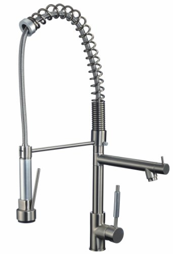 Compare New Industry Style Pre Rinse Kitchen Bar Sink Faucet Two Swivel Spouts Brushed Nickel Finish